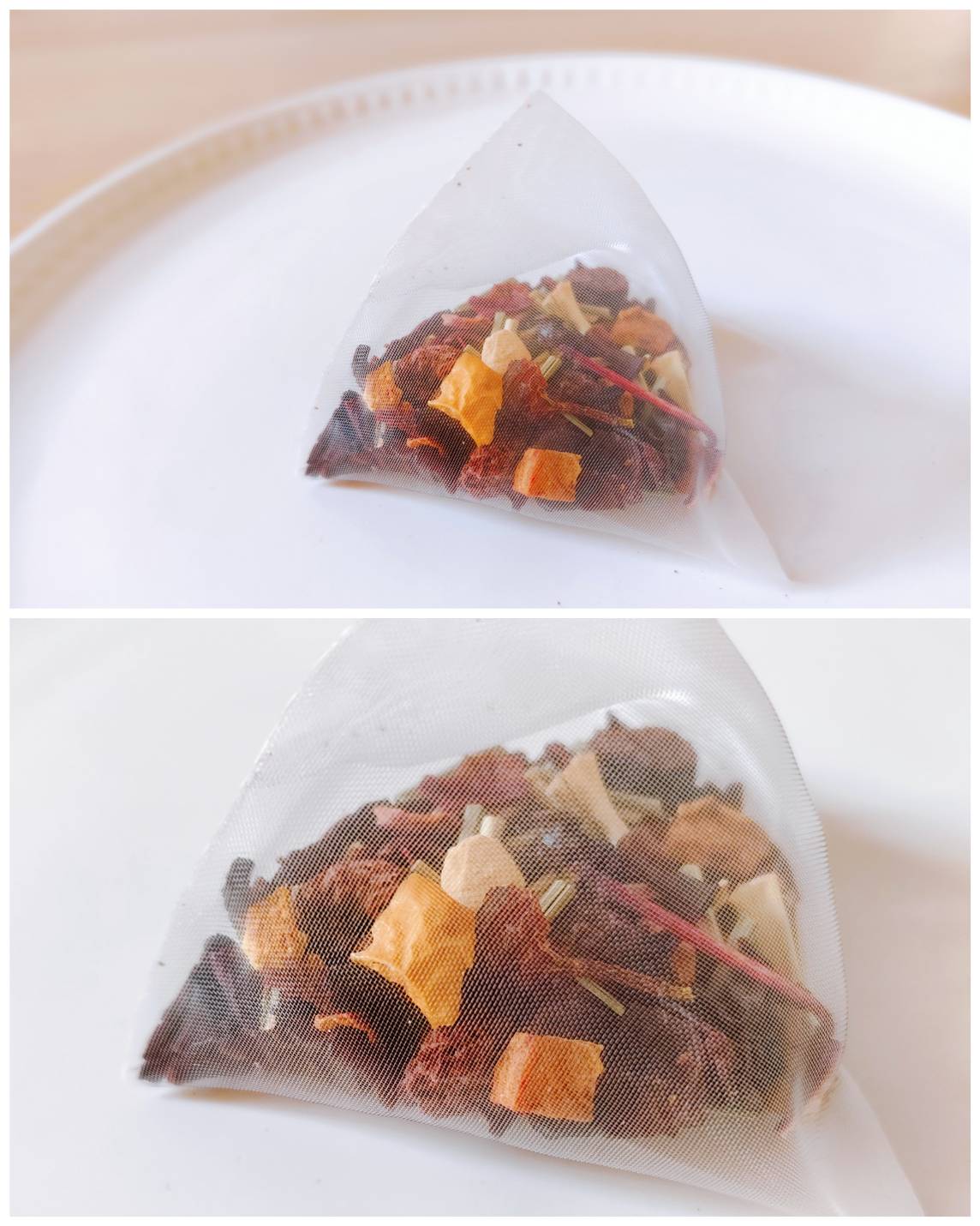 • 覆盆子萊姆果味茶:無咖啡因,由莓果、檸檬草、薔薇果等花草水果調配而成,覆盆莓富含維他命C、E、膳食纖維。採用日本頂級PET三角立體茶包,搭配清爽檸檬草與及鮮甜的蘋果乾,有著清香酸澀、層次豐富的滋味。